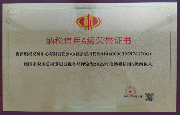 近日,在國家稅務(wù)總局澄邁縣稅務(wù)局納稅信用等級評定工作中,海南股交獲得“2022年度納稅信用A級納稅人”榮譽。海南股交自成立以來,認真執(zhí)行國家稅收法律法規(guī)和相關(guān)制度規(guī)定,履行納稅義務(wù),積極配合稅務(wù)機關(guān)的各項...