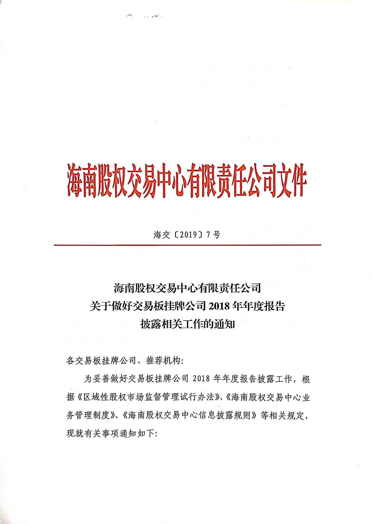關于做好交易板掛牌公司2018年年度報告披露相關工作的通知