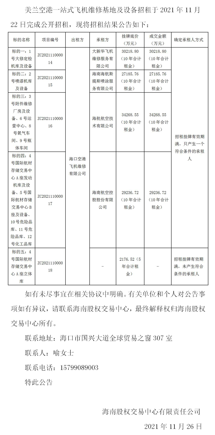 美蘭空港一站式飛機(jī)維修基地及設(shè)備招租結(jié)果公告
